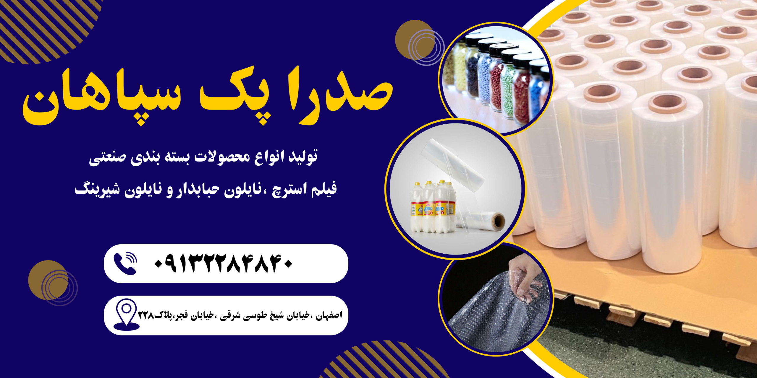 شرکت تولیدی صدرا پک سپاهان مجموعه تخصصی در حوزه تولید و تامین محصولات بسته بندی صنعتی ، تولید فیلم استرچ (استرچ پالت-سلفون صنعتی و مبلی) بصورت 5 لایه در ابعاد و ضخامت های متفاوت ، تولید نایلون شیرینگ و بسته بندی در ابعاد و ضخامت های مورد نیاز ، تولید نایلون های صنایع کشاورزی ، تولید نایلون حباب دار بصورت 3 لایه در رنگها و ابعاد مختلف بصورت رول و پاکت شده ، تامین تسمه های پلاستیکی ،چسب پهن بسته بندی و کارتن های بسته بندی ، با هدف ارائه محصولات استاندارد و با قیمت رقابتی فعالیت می کنیم .